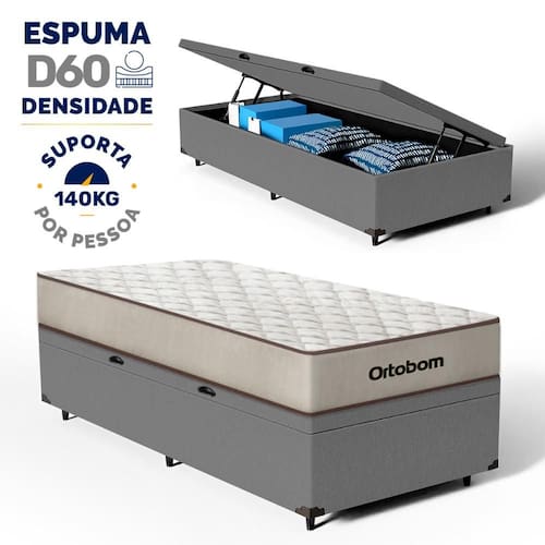 Além do colchão, a base baú incorporada aumenta a funcionalidade do seu quarto, oferecendo um espaço de armazenamento adicional. Construída com madeira tratada, tornando-a não apenas prática mas também durável e resistente. Este conjunto é a solução perfeita para quem busca maximizar o conforto e a utilidade em espaços compactos.