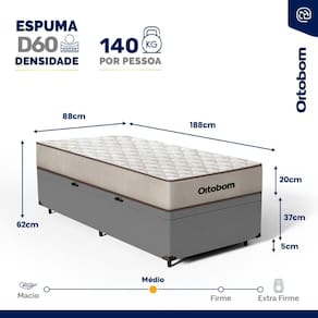 - Dimensões (larg. x comp. x alt.) Casal: 88x188x42cm;