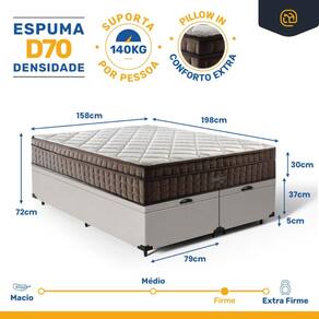 - Dimensões (larg. x comp. x alt.) Queen: 158x198x42cm Bipartido(2 Partes de 79);