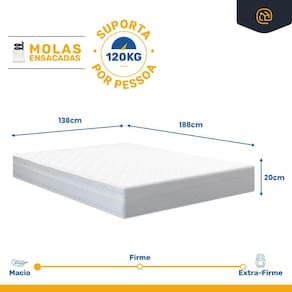 - Dimensões (larg. x comp. x alt.) 138x188x20cm.