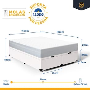 - Dimensões (larg. x comp. x alt.) Queen: 158x198x42cm Bipartido(2 Partes de 79);