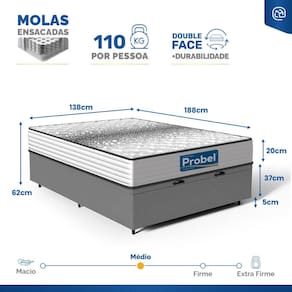 - Dimensões (larg. x comp. x alt.) Casal: 138x188x42cm;