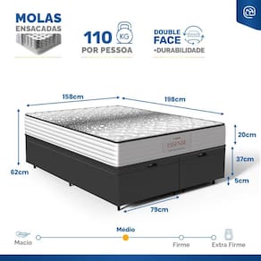- Dimensões (larg. x comp. x alt.) Queen: 158x198x42cm Bipartido(2 Partes de 79);