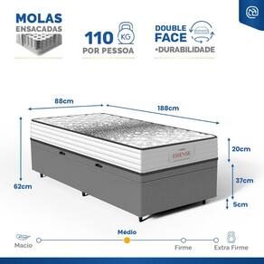 - Dimensões (larg. x comp. x alt.) Solteiro: 88x188x42cm;