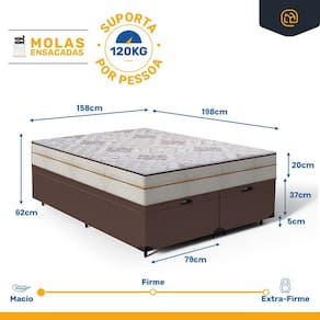 - Dimensões (larg. x comp. x alt.) Queen: 158x198x42cm Bipartido(2 Partes de 79);