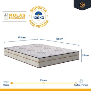 - Dimensões (larg. x comp. x alt.) 158x198x20cm.