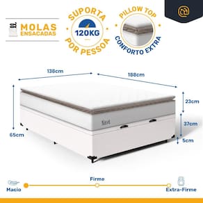 - Dimensões (larg. x comp. x alt.) Casal: 138x188x42cm;