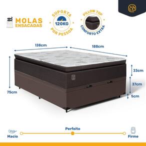 - Dimensões do produto (larg. x comp. x alt.) Casal: 138x188x42cm