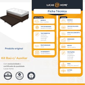 A cama Box com Baú e Auxiliar é confeccionada com materiais de qualidade, tornando o produto de alta durabilidade, resistência e um excelente acabamento. A alternativa ideal para maior aproveitamento do seu quarto, Ah! Ela conta ainda com cama auxiliar, para acomodar suas visitas com maior conforto, e um baú para guardar o que você desejar. Além de linda, ela é funcional!