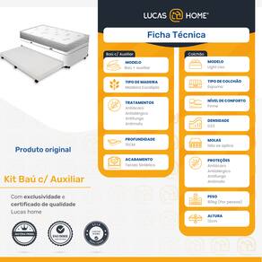 A cama Box com Baú e Auxiliar é confeccionada com materiais de qualidade, tornando o produto de alta durabilidade, resistência e um excelente acabamento. A alternativa ideal para maior aproveitamento do seu quarto, Ah! Ela conta ainda com cama auxiliar, para acomodar suas visitas com maior conforto, e um baú para guardar o que você desejar. Além de linda, ela é funcional!