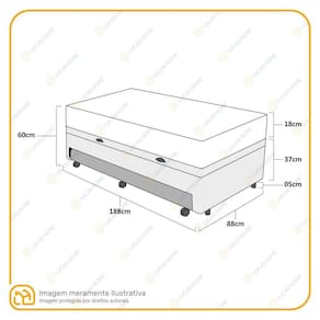 - Dimensões do produto (largura x comprimento x altura) 88x188x18cm.