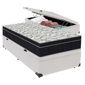 Com um baú generoso, ela oferece a solução perfeita para armazenar travesseiros extras, cobertores, malas e muito mais. Além disso, sua estrutura robusta suporta até 150 kg por pessoa, garantindo a sustentação ideal para o seu colchão e prolongando sua vida útil.