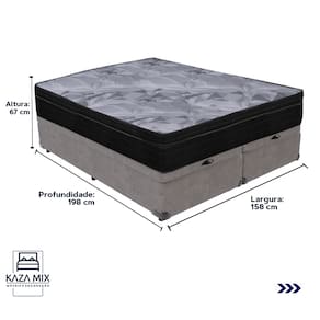 O conforto que sua casa precisa e a qualidade que você merece está na Kazamix! Redefina suas noites de sono com o Colchão Pampa Molas Ensacadas, projetado para oferecer máximo conforto e suporte. Suas molas ensacadas individualmente garantem estabilidade, minimizando vibrações e proporcionando um descanso tranquilo. O Ortopillow com tecido em poliéster de alta resistência e bordado matelassê acrescenta uma camada extra de maciez e conforto. Com tratamento antiácaro, antifungo e tecnologia No Turn, é ideal para quem busca praticidade e um ambiente de sono mais saudável. Este colchão combina qualidade e durabilidade para oferecer uma experiência de descanso incomparável. Modelo: Pampa Marca: Ortobom Tamanho: Queen Dimensões: 158x198X24 (Largura x Comprimento x Altura) Conforto: Macio Sistema: Molas ensacadas Pillow: Euro Pillow Peso Máximo recomendado: 120 kg (Por pessoa) Proteções: Antiácaro, antialérgico, antifungo, antimofo Garantia: 1 ano pelo FabricanteO conforto que sua casa precisa e a qualidade que você merece está na Kazamix Aproveite cada metro quadrado do seu dormitório com a Cama Box Baú! Projetada com madeira de reflorestamento reforçada, a Cama Box Baú é a escolha ideal para quem busca otimização de espaço e praticidade na organização do dia a dia. Com um baú generoso, ela oferece a solução perfeita para armazenar travesseiros extras, cobertores, malas e muito mais. Além disso, sua estrutura robusta suporta até 150 kg por pessoa, garantindo a sustentação ideal para o seu colchão e prolongando sua vida útil. O pistão a gás robusto proporciona uma abertura suave e segura do baú, oferecendo praticidade e resistência no uso diário. Para completar, o acabamento de alta qualidade combina perfeitamente com qualquer estilo de decoração, agregando elegância e versatilidade ao seu ambiente. Não perca tempo! Adquira agora mesmo sua Cama Box Baú e diga adeus à falta de espaço e desorganização. Marca: KazaMix Modelo: Baú Tamanho: Queen Dimensões: 158X198X37 (Largura x Comprimento x Altura) Estrutura: Madeira Peso máximo recomendado: 150 kg (Por Pessoa) Altura do Box: 32 cm Altura dos Pés: 5 cm Altura total: 37 cm Garantia: 03 meses Selo Ecologicamente Correto Atenção: Antes de finalizar sua compra, certifique-se de que as dimensões do produto sejam adequadas para serem transportadas pelos elevadores, portas, escadas e corredores de sua residência. Ressaltamos que não nos responsabilizamos pelo transporte do produto por meios específicos, como escadas, guinchos ou içamentos.