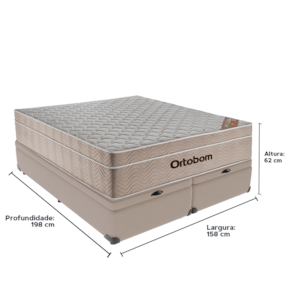 O conforto que sua casa precisa e a qualidade que você merece está na Kazamix! Durma com a Qualidade e Conforto que Você Merece! O Colchão Airtech SpringMolas Ensacadas Ortobom é a escolha perfeita para quem busca conforto e suporte. Equipado com um sistema de molas ensacadas, ele oferece suporte individualizado, garantindo o alinhamento correto da coluna e reduzindo os impactos dos movimentos durante o sono. O Euro Pillow proporciona uma camada extra de maciez, garantindo um sono ainda mais revigorante. Seu revestimento em tecido de malha e matelassê, junto com a lateral em suede, proporcionam um visual sofisticado, elevando ainda mais a estética do seu dormitório e agregando elegância ao ambiente. Além disso, o colchão conta com proteção antiácaro e antialérgico, criando um ambiente de sono mais saudável e ideal para quem busca bem-estar. Produzido com materiais de alta qualidade e a confiabilidade da Ortobom, líder em tecnologia e durabilidade, ele é feito para durar, oferecendo anos de conforto e suporte. Modelo: Airtech SpringMolas Ensacadas Marca: Ortobom Tamanho: Queen Dimensões: 158x198X25 (Largura x Comprimento x Altura) Conforto: Macio Sistema: Molas Ensacadas Pillow: Euro Pillow Peso Máximo recomendado: 120 kg (Por pessoa) Proteções: Antiácaro, antialérgico, antifungo, antimofo Garantia: 1 ano pelo FabricanteO conforto que sua casa precisa e a qualidade que você merece está na Kazamix Aproveite cada metro quadrado do seu dormitório com a Cama Box Baú! Projetada com madeira de reflorestamento reforçada, a Cama Box Baú é a escolha ideal para quem busca otimização de espaço e praticidade na organização do dia a dia. Com um baú generoso, ela oferece a solução perfeita para armazenar travesseiros extras, cobertores, malas e muito mais. Além disso, sua estrutura robusta suporta até 150 kg por pessoa, garantindo a sustentação ideal para o seu colchão e prolongando sua vida útil. O pistão a gás robusto proporciona uma abertura suave e segura do baú, oferecendo praticidade e resistência no uso diário. Para completar, o acabamento de alta qualidade combina perfeitamente com qualquer estilo de decoração, agregando elegância e versatilidade ao seu ambiente. Não perca tempo! Adquira agora mesmo sua Cama Box Baú e diga adeus à falta de espaço e desorganização. Marca: KazaMix Modelo: Baú Tamanho: Queen Dimensões: 158X198X37 (Largura x Comprimento x Altura) Estrutura: Madeira Peso máximo recomendado: 150 kg (Por Pessoa) Altura do Box: 32 cm Altura dos Pés: 5 cm Altura total: 37 cm Garantia: 03 meses Selo Ecologicamente Correto Atenção: Antes de finalizar sua compra, certifique-se de que as dimensões do produto sejam adequadas para serem transportadas pelos elevadores, portas, escadas e corredores de sua residência. Ressaltamos que não nos responsabilizamos pelo transporte do produto por meios específicos, como escadas, guinchos ou içamentos.