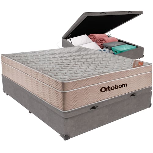 Cama Box Baú e Colchão Airtech Spring Molas Ensacadas Viúvo Ortobom - Cinza