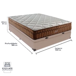 O conforto que sua casa precisa e a qualidade que você merece está na Kazamix! Apresentamos o Colchão Star Pillow In Ortopédico da Anjos, a escolha ideal para quem busca conforto, suporte e um toque extra de luxo. Seu design ortopédico oferece suporte progressivo para a coluna, prevenindo dores nas costas e promovendo o bem-estar durante o sono. O Euro Pillow, uma camada adicional de espuma macia na parte superior, proporciona uma sensação de aconchego e alívio dos pontos de pressão, melhorando ainda mais o conforto. Com revestimento em malha, o colchão garante respirabilidade superior, enquanto o acabamento em veludo nas laterais traz elegância ao produto. O conforto extra firme é perfeito para pessoas até 140kg, oferecendo uma superfície de sono estável e segura. Além disso, o colchão é tratado contra ácaros e fungos, promovendo um ambiente de sono saudável. Invista em noites de sono revitalizantes e desfrute do equilíbrio perfeito entre conforto e qualidade com o Colchão Star Pillow In! Modelo: Anjos Star Pillow In Marca: Anjos Tamanho: Casal Dimensões: 138x188X30 (Largura x Comprimento x Altura) Conforto: Extra Firme Pillow: Pillow Top Peso Máximo recomendado: 140 kg (Por pessoa) Proteções: Antiácaro, antialérgico, antifungo, antimofo Garantia: 1 ano pelo FabricanteO conforto que sua casa precisa e a qualidade que você merece está na Kazamix! Eleve o conforto e a sofisticação do seu quarto com a Cama Box! Produzida em madeira de reflorestamento reforçada, a Cama Box combina qualidade, durabilidade e um design elegante, que confere leveza e modernidade ao seu dormitório. Sua estrutura robusta suporta até 150 kg por pessoa, garantindo a sustentação perfeita para o colchão e prolongando a vida útil do produto. Com uma altura ergonômica, ela oferece maior conforto ao deitar e levantar, enquanto o acabamento de alta qualidade se adapta a qualquer estilo de decoração, unindo praticidade e estilo. Não perca tempo! Adquira agora mesmo a sua Cama Box e transforme seu dormitório com conforto e elegância. Marca: KazaMix Modelo: Box Tamanho: Casal Dimensões: 138X188X35 (Largura x Comprimento x Altura) Estrutura: Madeira Peso máximo recomendado: 150 kg (Por Pessoa) Altura do Box: 25 cm Altura dos Pés: 10 cm Altura total: 35 cm Garantia: 03 meses Selo Ecologicamente Correto Atenção: Antes de finalizar sua compra, certifique-se de que as dimensões do produto sejam adequadas para serem transportadas pelos elevadores, portas, escadas e corredores de sua residência. Ressaltamos que não nos responsabilizamos pelo transporte do produto por meios específicos, como escadas, guinchos ou içamentos.
