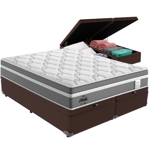 Cama Box Baú e Colchão Berlim Molas Ensacadas Queen Probel - Marrom