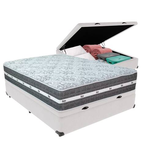 Cama Box Baú e Colchão Black Graphite Molas Ensacadas Casal 138x188X27 Anjos - Branco