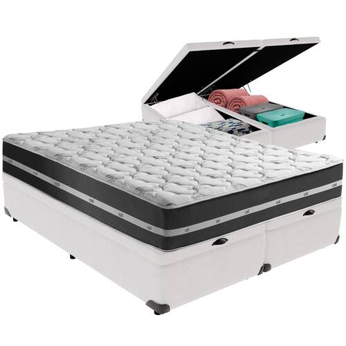 O conforto que sua casa precisa e a qualidade que você merece está na Kazamix! Descubra o Colchão Classic da Anjos, a combinação perfeita de funcionalidade, conforto e durabilidade. Com design clean e moderno, sua superfície plana proporciona um toque de elegância ao ambiente, enquanto as molas ensacadas garantem um suporte individualizado, ideal para um descanso tranquilo e sem transferência de movimento. Este modelo oferece conforto intermediário, adaptando-se às mais variadas preferências. Com tratamento antiácaro e antialérgico, o Classic cria um ambiente mais saudável e seguro para o seu sono. Um colchão de alta densidade que une qualidade e custo-benefício, perfeito para quem valoriza bem-estar e sofisticação. Transforme suas noites com o conforto que você merece! Modelo: Classic 26 Preto Marca: Anjos Tamanho: Queen Dimensões: 158x198X26 (Largura x Comprimento x Altura) Conforto: Intermediário Sistema: Molas ensacadas Pillow: Não se Aplica Peso Máximo recomendado: 130 kg (Por pessoa) Proteções: Antiácaro, antialérgico, antifungo, antimofo Garantia: 1 ano pelo FabricanteO conforto que sua casa precisa e a qualidade que você merece está na Kazamix Aproveite cada metro quadrado do seu dormitório com a Cama Box Baú! Projetada com madeira de reflorestamento reforçada, a Cama Box Baú é a escolha ideal para quem busca otimização de espaço e praticidade na organização do dia a dia. Com um baú generoso, ela oferece a solução perfeita para armazenar travesseiros extras, cobertores, malas e muito mais. Além disso, sua estrutura robusta suporta até 150 kg por pessoa, garantindo a sustentação ideal para o seu colchão e prolongando sua vida útil. O pistão a gás robusto proporciona uma abertura suave e segura do baú, oferecendo praticidade e resistência no uso diário. Para completar, o acabamento de alta qualidade combina perfeitamente com qualquer estilo de decoração, agregando elegância e versatilidade ao seu ambiente. Não perca tempo! Adquira agora mesmo sua Cama Box Baú e diga adeus à falta de espaço e desorganização. Marca: KazaMix Modelo: Baú Tamanho: Queen Dimensões: 158X198X37 (Largura x Comprimento x Altura) Estrutura: Madeira Peso máximo recomendado: 150 kg (Por Pessoa) Altura do Box: 32 cm Altura dos Pés: 5 cm Altura total: 37 cm Garantia: 03 meses Selo Ecologicamente Correto Atenção: Antes de finalizar sua compra, certifique-se de que as dimensões do produto sejam adequadas para serem transportadas pelos elevadores, portas, escadas e corredores de sua residência. Ressaltamos que não nos responsabilizamos pelo transporte do produto por meios específicos, como escadas, guinchos ou içamentos.