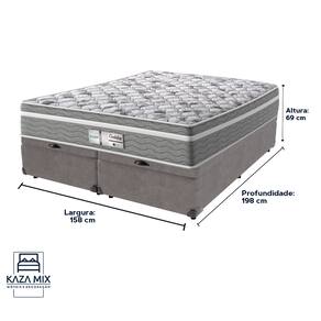 O conforto que sua casa precisa e a qualidade que você merece está na Kazamix! O Colchão Evolution é a escolha ideal para quem busca conforto, suporte e qualidade em cada noite de sono. Com Molas Ensacadas que oferecem um suporte individualizado, e um Pillow Euro que proporciona uma camada extra de suavidade, esse colchão transforma seu descanso em uma experiência de luxo. Com espuma D28 de alta densidade, o Evolution garante firmeza e conforto duradouros. Seu acabamento em poliéster diamante e bordado em matelassê trazem um toque de elegância e sofisticação ao seu ambiente. Além disso, o colchão é tratado com propriedades antiácaro e antialérgico, garantindo um sono mais saudável e seguro. Invista no seu bem-estar com o colchão Evolution, e experimente a combinação perfeita de conforto e durabilidade! Modelo: Evolution Marca: Probel Tamanho: Queen Dimensões: 158x198X32 (Largura x Comprimento x Altura) Conforto: Intermediário Sistema: Molas Ensacadas Pillow: Euro Pillow Peso Máximo recomendado: 110 kg (Por pessoa) Proteções: Antiácaro, antialérgico, antifungo, antimofo Garantia: 1 ano pelo FabricanteO conforto que sua casa precisa e a qualidade que você merece está na Kazamix Aproveite cada metro quadrado do seu dormitório com a Cama Box Baú! Projetada com madeira de reflorestamento reforçada, a Cama Box Baú é a escolha ideal para quem busca otimização de espaço e praticidade na organização do dia a dia. Com um baú generoso, ela oferece a solução perfeita para armazenar travesseiros extras, cobertores, malas e muito mais. Além disso, sua estrutura robusta suporta até 150 kg por pessoa, garantindo a sustentação ideal para o seu colchão e prolongando sua vida útil. O pistão a gás robusto proporciona uma abertura suave e segura do baú, oferecendo praticidade e resistência no uso diário. Para completar, o acabamento de alta qualidade combina perfeitamente com qualquer estilo de decoração, agregando elegância e versatilidade ao seu ambiente. Não perca tempo! Adquira agora mesmo sua Cama Box Baú e diga adeus à falta de espaço e desorganização. Marca: KazaMix Modelo: Baú Tamanho: Queen Dimensões: 158X198X37 (Largura x Comprimento x Altura) Estrutura: Madeira Peso máximo recomendado: 150 kg (Por Pessoa) Altura do Box: 32 cm Altura dos Pés: 5 cm Altura total: 37 cm Garantia: 03 meses Selo Ecologicamente Correto Atenção: Antes de finalizar sua compra, certifique-se de que as dimensões do produto sejam adequadas para serem transportadas pelos elevadores, portas, escadas e corredores de sua residência. Ressaltamos que não nos responsabilizamos pelo transporte do produto por meios específicos, como escadas, guinchos ou içamentos.