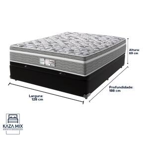 O conforto que sua casa precisa e a qualidade que você merece está na Kazamix! O Colchão Evolution é a escolha ideal para quem busca conforto, suporte e qualidade em cada noite de sono. Com Molas Ensacadas que oferecem um suporte individualizado, e um Pillow Euro que proporciona uma camada extra de suavidade, esse colchão transforma seu descanso em uma experiência de luxo. Com espuma D28 de alta densidade, o Evolution garante firmeza e conforto duradouros. Seu acabamento em poliéster diamante e bordado em matelassê trazem um toque de elegância e sofisticação ao seu ambiente. Além disso, o colchão é tratado com propriedades antiácaro e antialérgico, garantindo um sono mais saudável e seguro. Invista no seu bem-estar com o colchão Evolution, e experimente a combinação perfeita de conforto e durabilidade! Modelo: Evolution Marca: Probel Tamanho: Viúvo Dimensões: 128x188X18 (Largura x Comprimento x Altura) Conforto: Intermediário Sistema: Molas Ensacadas Pillow: Euro Pillow Peso Máximo recomendado: 110 kg (Por pessoa) Proteções: Antiácaro, antialérgico, antifungo, antimofo Garantia: 1 ano pelo FabricanteO conforto que sua casa precisa e a qualidade que você merece está na Kazamix Aproveite cada metro quadrado do seu dormitório com a Cama Box Baú! Projetada com madeira de reflorestamento reforçada, a Cama Box Baú é a escolha ideal para quem busca otimização de espaço e praticidade na organização do dia a dia. Com um baú generoso, ela oferece a solução perfeita para armazenar travesseiros extras, cobertores, malas e muito mais. Além disso, sua estrutura robusta suporta até 150 kg por pessoa, garantindo a sustentação ideal para o seu colchão e prolongando sua vida útil. O pistão a gás robusto proporciona uma abertura suave e segura do baú, oferecendo praticidade e resistência no uso diário. Para completar, o acabamento de alta qualidade combina perfeitamente com qualquer estilo de decoração, agregando elegância e versatilidade ao seu ambiente. Não perca tempo! Adquira agora mesmo sua Cama Box Baú e diga adeus à falta de espaço e desorganização. Marca: KazaMix Modelo: Baú Tamanho: Viúvo Dimensões: 128X188X37 (Largura x Comprimento x Altura) Estrutura: Madeira Peso máximo recomendado: 150 kg (Por Pessoa) Altura do Box: 32 cm Altura dos Pés: 5 cm Altura total: 37 cm Garantia: 03 meses Selo Ecologicamente Correto Atenção: Antes de finalizar sua compra, certifique-se de que as dimensões do produto sejam adequadas para serem transportadas pelos elevadores, portas, escadas e corredores de sua residência. Ressaltamos que não nos responsabilizamos pelo transporte do produto por meios específicos, como escadas, guinchos ou içamentos.