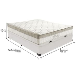 O conforto que sua casa precisa e a qualidade que você merece está na Kazamix! O Colchão King Best Anjos é a escolha ideal para quem busca um sono profundo e revigorante. Com sua espuma D28 de alta performance e o inovador sistema de Molas Ensacadas, ele oferece o equilíbrio perfeito entre conforto intermediário e suporte individualizado, adaptando-se ao formato do seu corpo para garantir noites mais tranquilas. O Pillow Euro, com sua camada extra de espuma, proporciona um toque adicional de conforto e alívio dos pontos de pressão. O sistema No Turn oferece praticidade, pois não é necessário virar o colchão, mantendo seu desempenho sempre impecável. Além disso, os tratamentos antiácaro e antialérgico criam um ambiente saudável, ideal para quem busca um descanso livre de impurezas. Desfrute da combinação de durabilidade, conforto e qualidade com o Colchão King Best Anjos e invista no seu bem-estar. Uma escolha que transforma suas noites em momentos de descanso incomparáveis Modelo: King Best Bege Marca: Anjos Tamanho: Casal Dimensões: 138x188X28 (Largura x Comprimento x Altura) Conforto: Intermediário Sistema: Molas Ensacadas Pillow: Euro Pillow Peso Máximo recomendado: 130 kg (Por pessoa) Proteções: Antiácaro, antialérgico, antifungo, antimofo Garantia: 1 ano pelo FabricanteO conforto que sua casa precisa e a qualidade que você merece está na Kazamix Aproveite cada metro quadrado do seu dormitório com a Cama Box Baú! Projetada com madeira de reflorestamento reforçada, a Cama Box Baú é a escolha ideal para quem busca otimização de espaço e praticidade na organização do dia a dia. Com um baú generoso, ela oferece a solução perfeita para armazenar travesseiros extras, cobertores, malas e muito mais. Além disso, sua estrutura robusta suporta até 150 kg por pessoa, garantindo a sustentação ideal para o seu colchão e prolongando sua vida útil. O pistão a gás robusto proporciona uma abertura suave e segura do baú, oferecendo praticidade e resistência no uso diário. Para completar, o acabamento de alta qualidade combina perfeitamente com qualquer estilo de decoração, agregando elegância e versatilidade ao seu ambiente. Não perca tempo! Adquira agora mesmo sua Cama Box Baú e diga adeus à falta de espaço e desorganização. Marca: KazaMix Modelo: Baú Tamanho: Casal Dimensões: 138X188X37 (Largura x Comprimento x Altura) Estrutura: Madeira Peso máximo recomendado: 150 kg (Por Pessoa) Altura do Box: 32 cm Altura dos Pés: 5 cm Altura total: 37 cm Garantia: 03 meses Selo Ecologicamente Correto Atenção: Antes de finalizar sua compra, certifique-se de que as dimensões do produto sejam adequadas para serem transportadas pelos elevadores, portas, escadas e corredores de sua residência. Ressaltamos que não nos responsabilizamos pelo transporte do produto por meios específicos, como escadas, guinchos ou içamentos.