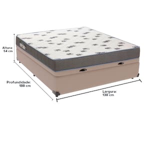 O conforto que sua casa precisa e a qualidade que você merece está na Kazamix! Descubra o Colchão Ortobom Light D33, perfeito para quem busca resistência e conforto. Com sua espuma D33 Pró Aditivada de Alta Performance, ele oferece sustentação firme e durabilidade superior, ideal para noites de sono tranquilas e revigorantes. O tampo com bordado em Matelassê proporciona um toque extra de conforto, enquanto o revestimento em Viscopoli garante suavidade e elegância. Além disso, este modelo conta com tratamento antiácaro e antialérgico, promovendo um ambiente de descanso mais saudável e livre de impurezas. Fabricado com a qualidade reconhecida da Ortobom, o Light D33 é a escolha ideal para quem valoriza bem-estar e durabilidade. Transforme suas noites com o conforto que você merece! Modelo: Light Marca: Ortobom Tamanho: Casal Dimensões: 138x188X18 (Largura x Comprimento x Altura) Conforto: Firme Sistema: Espuma D33 Pillow: Não se Aplica Peso Máximo recomendado: 100 kg (Por pessoa) Proteções: Antiácaro, antialérgico, antifungo, antimofo Garantia: 1 ano pelo FabricanteO conforto que sua casa precisa e a qualidade que você merece está na Kazamix Aproveite cada metro quadrado do seu dormitório com a Cama Box Baú! Projetada com madeira de reflorestamento reforçada, a Cama Box Baú é a escolha ideal para quem busca otimização de espaço e praticidade na organização do dia a dia. Com um baú generoso, ela oferece a solução perfeita para armazenar travesseiros extras, cobertores, malas e muito mais. Além disso, sua estrutura robusta suporta até 150 kg por pessoa, garantindo a sustentação ideal para o seu colchão e prolongando sua vida útil. O pistão a gás robusto proporciona uma abertura suave e segura do baú, oferecendo praticidade e resistência no uso diário. Para completar, o acabamento de alta qualidade combina perfeitamente com qualquer estilo de decoração, agregando elegância e versatilidade ao seu ambiente. Não perca tempo! Adquira agora mesmo sua Cama Box Baú e diga adeus à falta de espaço e desorganização. Marca: KazaMix Modelo: Baú Tamanho: Casal Dimensões: 138X188X37 (Largura x Comprimento x Altura) Estrutura: Madeira Peso máximo recomendado: 150 kg (Por Pessoa) Altura do Box: 32 cm Altura dos Pés: 5 cm Altura total: 37 cm Garantia: 03 meses Selo Ecologicamente Correto Atenção: Antes de finalizar sua compra, certifique-se de que as dimensões do produto sejam adequadas para serem transportadas pelos elevadores, portas, escadas e corredores de sua residência. Ressaltamos que não nos responsabilizamos pelo transporte do produto por meios específicos, como escadas, guinchos ou içamentos.