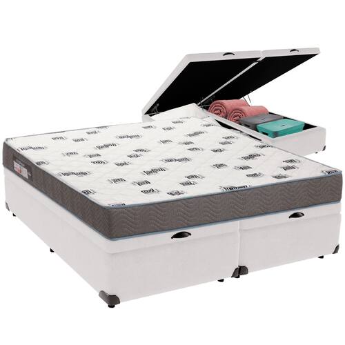 O conforto que sua casa precisa e a qualidade que você merece está na Kazamix! Descubra o Colchão Ortobom Light D33, perfeito para quem busca resistência e conforto. Com sua espuma D33 Pró Aditivada de Alta Performance, ele oferece sustentação firme e durabilidade superior, ideal para noites de sono tranquilas e revigorantes. O tampo com bordado em Matelassê proporciona um toque extra de conforto, enquanto o revestimento em Viscopoli garante suavidade e elegância. Além disso, este modelo conta com tratamento antiácaro e antialérgico, promovendo um ambiente de descanso mais saudável e livre de impurezas. Fabricado com a qualidade reconhecida da Ortobom, o Light D33 é a escolha ideal para quem valoriza bem-estar e durabilidade. Transforme suas noites com o conforto que você merece! Modelo: Light Marca: Ortobom Tamanho: Queen Dimensões: 158x198X18 (Largura x Comprimento x Altura) Conforto: Firme Sistema: Espuma D33 Pillow: Não se Aplica Peso Máximo recomendado: 100 kg (Por pessoa) Proteções: Antiácaro, antialérgico, antifungo, antimofo Garantia: 1 ano pelo FabricanteO conforto que sua casa precisa e a qualidade que você merece está na Kazamix Aproveite cada metro quadrado do seu dormitório com a Cama Box Baú! Projetada com madeira de reflorestamento reforçada, a Cama Box Baú é a escolha ideal para quem busca otimização de espaço e praticidade na organização do dia a dia. Com um baú generoso, ela oferece a solução perfeita para armazenar travesseiros extras, cobertores, malas e muito mais. Além disso, sua estrutura robusta suporta até 150 kg por pessoa, garantindo a sustentação ideal para o seu colchão e prolongando sua vida útil. O pistão a gás robusto proporciona uma abertura suave e segura do baú, oferecendo praticidade e resistência no uso diário. Para completar, o acabamento de alta qualidade combina perfeitamente com qualquer estilo de decoração, agregando elegância e versatilidade ao seu ambiente. Não perca tempo! Adquira agora mesmo sua Cama Box Baú e diga adeus à falta de espaço e desorganização. Marca: KazaMix Modelo: Baú Tamanho: Queen Dimensões: 158X198X37 (Largura x Comprimento x Altura) Estrutura: Madeira Peso máximo recomendado: 150 kg (Por Pessoa) Altura do Box: 32 cm Altura dos Pés: 5 cm Altura total: 37 cm Garantia: 03 meses Selo Ecologicamente Correto Atenção: Antes de finalizar sua compra, certifique-se de que as dimensões do produto sejam adequadas para serem transportadas pelos elevadores, portas, escadas e corredores de sua residência. Ressaltamos que não nos responsabilizamos pelo transporte do produto por meios específicos, como escadas, guinchos ou içamentos.