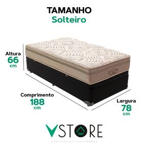 A tecnologia que a sua casa merece está na V-Store! O Conjunto Colchão Los Angeles + Base Box Baú Bravus da V-Store oferece conforto e funcionalidade. O colchão, com molas ensacadas e sistema EPS, garante suporte ideal, conforto térmico e proteção antiácaro. A base box, com amplo espaço de armazenamento, é feita de madeira reflorestada e revestida com tecido resistente, proporcionando praticidade e sofisticação ao seu quarto.Característica Do Colchão: Modelo: Los AngelesMarca: V-StoreTamanho: SolteiroDimensões: 78x28x188 (Largura x Altura x Comprimento)Conforto: MédioSistema: Molas EnsacadasPillow: Não se aplicaPeso Máximo recomendado: 150 kg (Por pessoa)Proteções: Antiácaro, antialérgico, antifungo, antimofoGarantia: 12 Meses (Espuma) / 10 anos ( Conjunto de Molas Ensacadas)Característica Da Base: Marca: V-StoreModelo: BravusTamanho: SolteiroDimensões: 78x44x188 (Largura x Altura x Comprimento)Estrutura: MadeiraPeso máximo recomendado: 150 kg (Por Pessoa)Altura do Box: 38 cmAltura dos Pés: 6 cmAltura total: 44 cmGarantia: 12 Meses (Estrutura) / 3 meses (Tecido)Selo Ecologicamente CorretoAtenção:- Antes de finalizar sua compra, recomendamos que verifique se as dimensões do produto são adequadas para serem transportadas pelos elevadores, portas, escadas e corredores de sua residência. Ressaltamos que não nos responsabilizamos pelo transporte do produto por meios específicos, como escadas, guinchos ou içamentos.- É possível que hajam leves variações de cor de acordo com o dispositivo que está sendo utilizado como smartphones, computadores, monitores e outros.