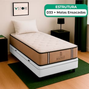 A tecnologia que a sua casa merece está na V-Store! O Conjunto Colchão Madrid + Base Box Baú Bravus da V-Store oferece o equilíbrio perfeito entre conforto, praticidade e elegância. O colchão, com molas ensacadas e sistema EPS, garante noites de sono tranquilas, com suporte ideal e proteção contra ácaros e alergias. Já a base box baú, feita com madeira reflorestada, conta com um design sofisticado, amplo espaço de armazenamento e funcionalidade adicional para guardar travesseiros, malas e cobertores. Com capacidade para até 150 kg por pessoa, esse conjunto é ideal para quem busca qualidade e praticidade.Característica Do Colchão: Modelo: MadridMarca: V-StoreTamanho: SolteiroDimensões: 78x28x188 (Largura x Altura x Comprimento)Conforto: MédioSistema: Molas EnsacadasPillow: Não se aplicaPeso Máximo recomendado: 150 kg (Por pessoa)Proteções: Antiácaro, antialérgico, antifungo, antimofoGarantia: 12 Meses (Espuma) / 10 anos ( Conjunto de Molas Ensacadas)Característica Da Base: Marca: V-StoreModelo: BravusTamanho: SolteiroDimensões: 78x44x188 (Largura x Altura x Comprimento)Estrutura: MadeiraPeso máximo recomendado: 150 kg (Por Pessoa)Altura do Box: 38 cmAltura dos Pés: 6 cmAltura total: 44 cmGarantia: 12 Meses (Estrutura) / 3 meses (Tecido)Selo Ecologicamente CorretoAtenção:- Antes de finalizar sua compra, recomendamos que verifique se as dimensões do produto são adequadas para serem transportadas pelos elevadores, portas, escadas e corredores de sua residência. Ressaltamos que não nos responsabilizamos pelo transporte do produto por meios específicos, como escadas, guinchos ou içamentos.- É possível que hajam leves variações de cor de acordo com o dispositivo que está sendo utilizado como smartphones, computadores, monitores e outros.