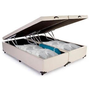 Cama Box Baú King Bipartido Sintético Serene Branco 198x203x44