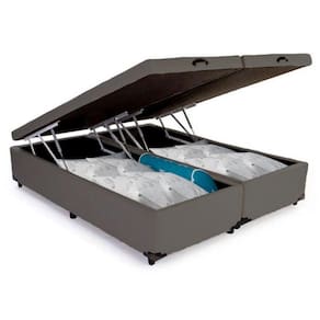 Cama Box Baú King Bipartido Sintético Serene Cinza 198x203x44