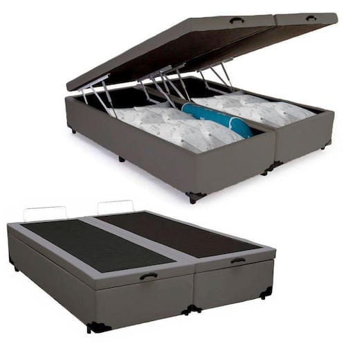 Cama Box Baú King Bipartido Sintético SerenePrime Cinza 198x203x44