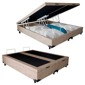 Cama Box Baú King Bipartido Suede Serene Bege 198x203x44