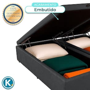 Cama Box Bau King Blindado Nature Cinza 193x203 Base baú King com 37cm de altura e amplo espaço interno para organização Revestimento em Veludo , fácil de limpar e com visual moderno