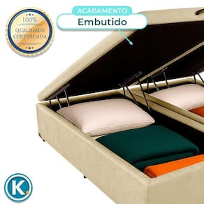 Cama Box Bau King Blindado Nature Perola 193x203 Base baú King com 37cm de altura e amplo espaço interno para organização Revestimento em Veludo , fácil de limpar e com visual moderno