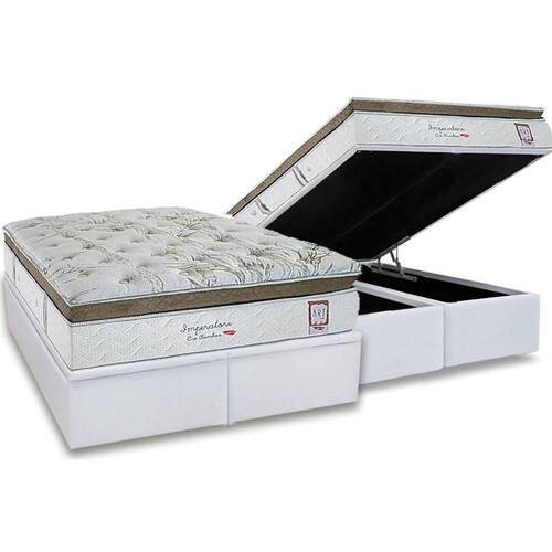 Cama Box Baú King: Colchão Molas Ensacadas Herval Imperatore Eco Bamboo + Base Crc Linhão White (193x203)