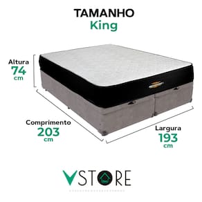 A tecnologia que a sua casa merece está na V-Store! O Conjunto Colchão Orthopedic + Base Box Baú Bravus da V-Store une conforto e funcionalidade. O colchão, com espuma D33 e suporte extra firme, oferece alinhamento ideal e proteção contra ácaros, alergias e fungos. A base box baú, com estrutura resistente e espaço interno, combina organização e estilo, otimizando seu dormitório com praticidade e elegância.Característica Do Colchão: Modelo: OrthopedicMarca: V-StoreTamanho: KingDimensões: 193x30x203 (Largura x Altura x Comprimento)Conforto: Extra FirmeSistema: EspumaPillow: Não se aplicaPeso Máximo recomendado: 110 kg (Por pessoa)Proteções: Antiácaro, antialérgico, antifungo, antimofoGarantia: 12 Meses (Espuma)Característica Da Base: Marca: V-StoreModelo: BravusTamanho: KingDimensões: 193x44x203 (Largura x Altura x Comprimento)Estrutura: MadeiraPeso máximo recomendado: 150 kg (Por Pessoa)Altura do Box: 38 cmAltura dos Pés: 6 cmAltura total: 44 cmGarantia: 12 Meses (Estrutura) / 3 meses (Tecido)Selo Ecologicamente CorretoAtenção:- Antes de finalizar sua compra, recomendamos que verifique se as dimensões do produto são adequadas para serem transportadas pelos elevadores, portas, escadas e corredores de sua residência. Ressaltamos que não nos responsabilizamos pelo transporte do produto por meios específicos, como escadas, guinchos ou içamentos.- É possível que hajam leves variações de cor de acordo com o dispositivo que está sendo utilizado como smartphones, computadores, monitores e outros.