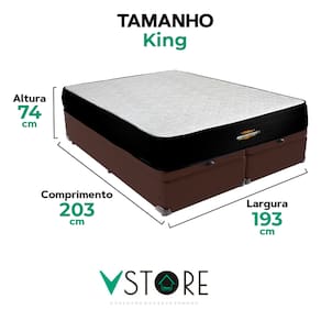 A tecnologia que a sua casa merece está na V-Store! O Conjunto Colchão Orthopedic + Base Box Baú Bravus da V-Store une conforto e funcionalidade. O colchão, com espuma D33 e suporte extra firme, oferece alinhamento ideal e proteção contra ácaros, alergias e fungos. A base box baú, com estrutura resistente e espaço interno, combina organização e estilo, otimizando seu dormitório com praticidade e elegância.Característica Do Colchão: Modelo: OrthopedicMarca: V-StoreTamanho: KingDimensões: 193x30x203 (Largura x Altura x Comprimento)Conforto: Extra FirmeSistema: EspumaPillow: Não se aplicaPeso Máximo recomendado: 110 kg (Por pessoa)Proteções: Antiácaro, antialérgico, antifungo, antimofoGarantia: 12 Meses (Espuma)Característica Da Base: Marca: V-StoreModelo: BravusCor do Box: MarromTamanho: KingDimensões: 193x44x203 (Largura x Altura x Comprimento)Estrutura: MadeiraPeso máximo recomendado: 150 kg (Por Pessoa)Altura do Box: 38 cmAltura dos Pés: 6 cmAltura total: 44 cmGarantia: 12 Meses (Estrutura) / 3 meses (Tecido)Selo Ecologicamente CorretoAtenção:- Antes de finalizar sua compra, recomendamos que verifique se as dimensões do produto são adequadas para serem transportadas pelos elevadores, portas, escadas e corredores de sua residência. Ressaltamos que não nos responsabilizamos pelo transporte do produto por meios específicos, como escadas, guinchos ou içamentos.- É possível que hajam leves variações de cor de acordo com o dispositivo que está sendo utilizado como smartphones, computadores, monitores e outros.