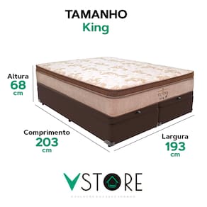 A tecnologia que a sua casa merece está na V-Store! O colchão Victory Solteiro da V-Store oferece noites de sono tranquilas e confortáveis, com seu toque macio e sistema de molas ensacadas que garantem suporte ideal e independência de movimentos. O Pillow Euro Pillow proporciona ainda mais suavidade, enquanto a tecnologia EPS adiciona resistência e durabilidade. Com proteções contra ácaros, fungos, mofo e alergias, ele garante um ambiente de sono saudável. Suporta até 150 kg por pessoa e tem garantia de 12 meses.A Base Box Baú Bravus da V-Store combina praticidade e sofisticação, com madeira reflorestada e revestimento sintético que facilitam a manutenção. Seu design otimiza o espaço de armazenamento e oferece resistência, suportando até 150 kg por pessoa. Com 44 cm de altura total e Selo Ecologicamente Correto, ela é ideal para quem busca sustentabilidade e qualidade. Transforme seu quarto com o colchão Victory e a Base Box Baú Bravus da V-Store!Característica Do Colchão: Modelo: VictoryMarca: V-StoreTamanho: KingDimensões: 193x30x203 (Largura x Altura x Comprimento)Conforto: MédioSistema: Molas EnsacadasPillow: Euro PillowPeso Máximo recomendado: 150 kg (Por pessoa)Proteções: Antiácaro, antialérgico, antifungo, antimofoGarantia: 12 Meses (Espuma) / 10 anos ( Conjunto de Molas Ensacadas)Característica Da Base: Marca: V-StoreModelo: BravusCor do Box: MarromTamanho: KingDimensões: 193x44x203 (Largura x Altura x Comprimento)Estrutura: MadeiraPeso máximo recomendado: 150 kg (Por Pessoa)Altura do Box: 38 cmAltura dos Pés: 6 cmAltura total: 44 cmGarantia: 12 Meses (Estrutura) / 3 meses (Tecido)Selo Ecologicamente CorretoAtenção:- Antes de finalizar sua compra, recomendamos que verifique se as dimensões do produto são adequadas para serem transportadas pelos elevadores, portas, escadas e corredores de sua residência. Ressaltamos que não nos responsabilizamos pelo transporte do produto por meios específicos, como escadas, guinchos ou içamentos.- É possível que hajam leves variações de cor de acordo com o dispositivo que está sendo utilizado como smartphones, computadores, monitores e outros.