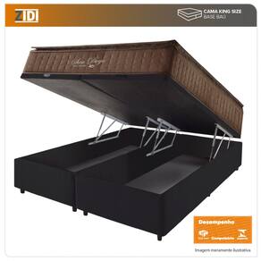 Cama Box Baú King Preta + Colchão Molas Ensacadas Pillow Top San Diego 193x203x72cm