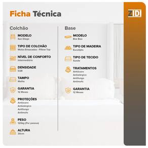 Colchão King Size Molas Ensacadas Pillow Top San Diego 193x203x30cm