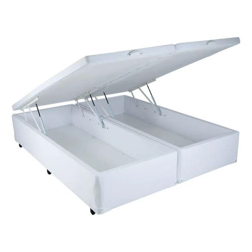 Fabricado pela Mega Colchões com a mais avançada tecnologia, o Box Baú Branco com Pistão tem um sistema de fácil abertura por pistões à Gás (amortecedores).