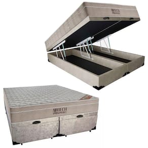 Cama Box Baú King Suede Bipartido + Colchão Ortobom Airtech Molas Ensacadas 65x193x203 Bege