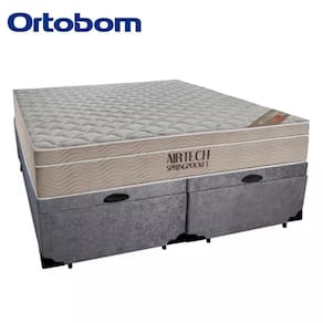 Cama Box Baú King Suede Bipartido + Colchão Ortobom Airtech Molas Ensacadas 65x193x203 Cinza