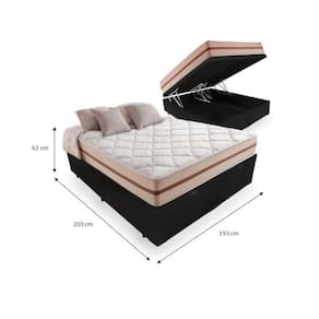 Cama Box Baú King Tecido Sintético Preto com Colchão Pillow Angel - Bello Box - Molas Ensacadas 62x193x203O Conjunto Cama Box Baú King com Colchão de Molas Ensacadas Pillow Angel - Bello Box é uma combinação que oferece uma solução completa, praticidade e agilidade na aquisição de sua nova cama. O Colchão De Molas Ensacadas Pillow Angel - Bello Box é indicado para pessoas de até 120kg proporcionando conforto macio, confeccionado em molas ensacadas de alta qualidade e conta com uma camada de espuma D28. A Cama Box com alta durabilidade, resistente e excelente acabamento em tecido sintético com cantoneiras plásticas para proteção, o que lhe confere requinte e sofisticação em qualquer ambiente. Especificações Técnicas Colchão: - Marca: Bello Box. -Modelo: Molas Ensacada - Pillow Angel. - Proteções: Antiácaro - Antialérgico - Antifungo - Antimofo. - Acabamento: Bordado em Matelassê. - Matéria prima: Espuma/Molas/Tecido. - Tipo de conforto: Intermediário Firme. - Peso máximo recomendado: até 120Kg (por pessoa). - Dimensões do produto (altura x largura x comprimento). - King: 22x193x203cm. - Garantia: 3 meses. Especificações Técnicas Baú: - Material: Madeira tratada. - Proteções: Antiácaro - Antialérgico - Antifungo – Antimofo. - Peso máximo recomendado: até 100kg (por pessoa, fora o colchão). - Altura do baú: 35cm. - Profundidade do baú: 25cm. - Revestimento: Tecido Sintético. - Quantidade de Pés: 6 pés de plástico. - Altura dos pés: 6cm. -Cor: Preto. - Garantia: 3 meses. - Dimensões do produto (altura x largura x comprimento) King: 40x193x203cm. *ATENÇÃO: Verifique se as dimensões dos produtos passam por elevadores, portas, escadas e corredores. Não nos responsabilizamos pelo transporte dos produtos por escadas, guinchos, içamentos ou quaisquer outros meios específicos de transporte. As imagens ambientadas são meramente ilustrativas e podem apresentar itens que não compõe o produto. - As cores do produto podem variar de acordo com o monitor, a iluminação do ambiente ou sua percepção visual.