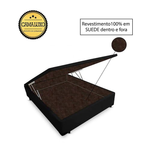 Cama Box Baú Luxo Blindado Suede Preto com Revestimento Interno em Suede Marrom é produzido com os melhores materiais, proporcionando uma alta resistência e durabilidade prolongada.