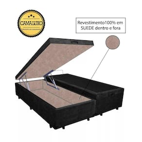 Cama Box Baú Luxo Blindado Suede Preto com Revestimento Interno em Suede Bege é produzido com os melhores materiais, proporcionando uma alta resistência e durabilidade prolongada.