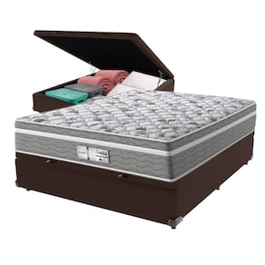 Cama Box Baú Marrom e Colchão Casal Evolution Molas Ensacadas Probel