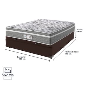 Bem-vindo(a) ao nosso catálogo!Apresentamos a você uma descrição completa sobre esse produto:Primeira marca a fabricar colchões em escala industrial no Brasil, a Probel sempre apresentou novidades ao mercado. Entre elas, estão os sistemas exclusivos de molejo Multilastic e de espumação Uniblock.Modelo: EvolutionNível de Conforto: Intermediário Suporte de peso: 240 quilos (120 kg por pessoa)Molas: Molas EnsacadasPillow: EuropillowEspuma: D28Altura: 32 cmTecido:Bordado em MatelassêTransforme suas noites com o Colchão Evolution, onde tecnologia e conforto se encontram para proporcionar o descanso perfeito. Com molas ensacadas e espuma de densidade D28, ele oferece o suporte ideal para alinhar sua coluna e aliviar pontos de pressão, garantindo um sono reparador e sem interrupções.O acabamento em poliéster diamante traz um toque de luxo, enquanto o pillow euro adiciona uma camada extra de conforto, fazendo você se sentir em um verdadeiro abraço a cada noite. Além disso, o tratamento antiácaro e antialérgico promove um ambiente mais saudável, ideal para quem busca bem-estar e saúde no seu descanso.Com suporte de peso de até 120 kg por pessoa, o Evolution é robusto e durável, feito para acompanhar você por muitos anos. Não perca a chance de transformar suas noites com o Colchão Evolution e sinta a diferença de um sono verdadeiramente revitalizante!Além de tudo, esse produto acompanha a Cama Box com Baú da Kaza Mix e assim se torna um conjunto perfeito para o seu quarto!Marca: Kaza MixCor do Baú: MarromTamanho: CasalMaterial dos pés: MadeiraEstrutura: MadeiraPeso máximo recomendado: Até 150kg de cada ladoAbertura: Pistão a gásLargura: 138cmComprimento: 188cmAltura total: 42cmAltura interna Baú: 27cmAltura dos pés: 6cmGarantia: 03 mesesSelo Ecologicamente CorretoAtenção: - Antes de finalizar sua compra, recomendamos que verifique se as dimensões do produto são adequadas para serem transportadas pelos elevadores, portas, escadas e corredores de sua residência. Ressaltamos que não nos responsabilizamos pelo transporte do produto por meios específicos, como escadas, guinchos ou içamentos.- É possível que hajam leves variações de cor de acordo com o dispositivo que está sendo utilizado como smartphones, computadores, monitores e outros.